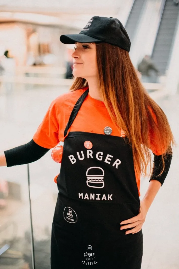 Kuchařská zástěra s logem BURGER STREET FESTIVAL. Barva černá. Jedna velikost.
